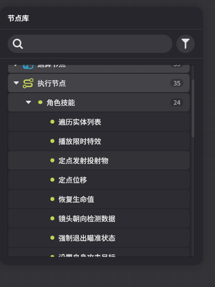 **特殊:技能节点图无需额外配置触发场景(开端固定包含【节点图开始】),施放技能就代表可触发,在后续设置的技能动画编辑中将再说明