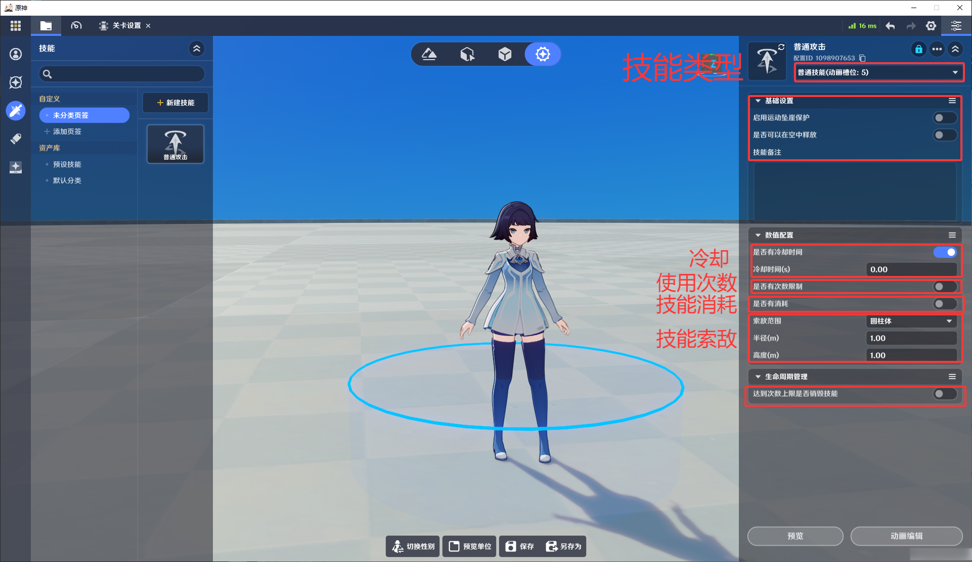 2.【局内编辑器】配置【技能基础设置】