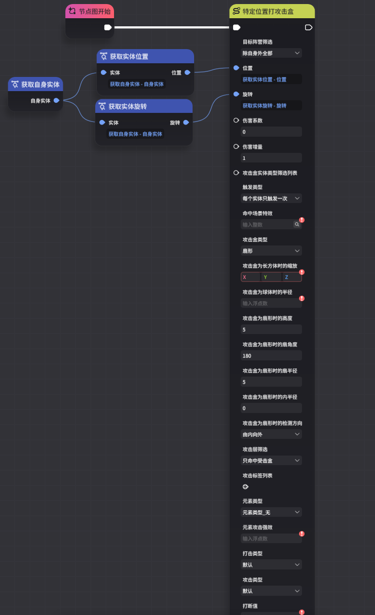 结果 | 触发攻击 | 【执行节点】:使用【特定位置打攻击盒】制作攻击伤害效果 |
