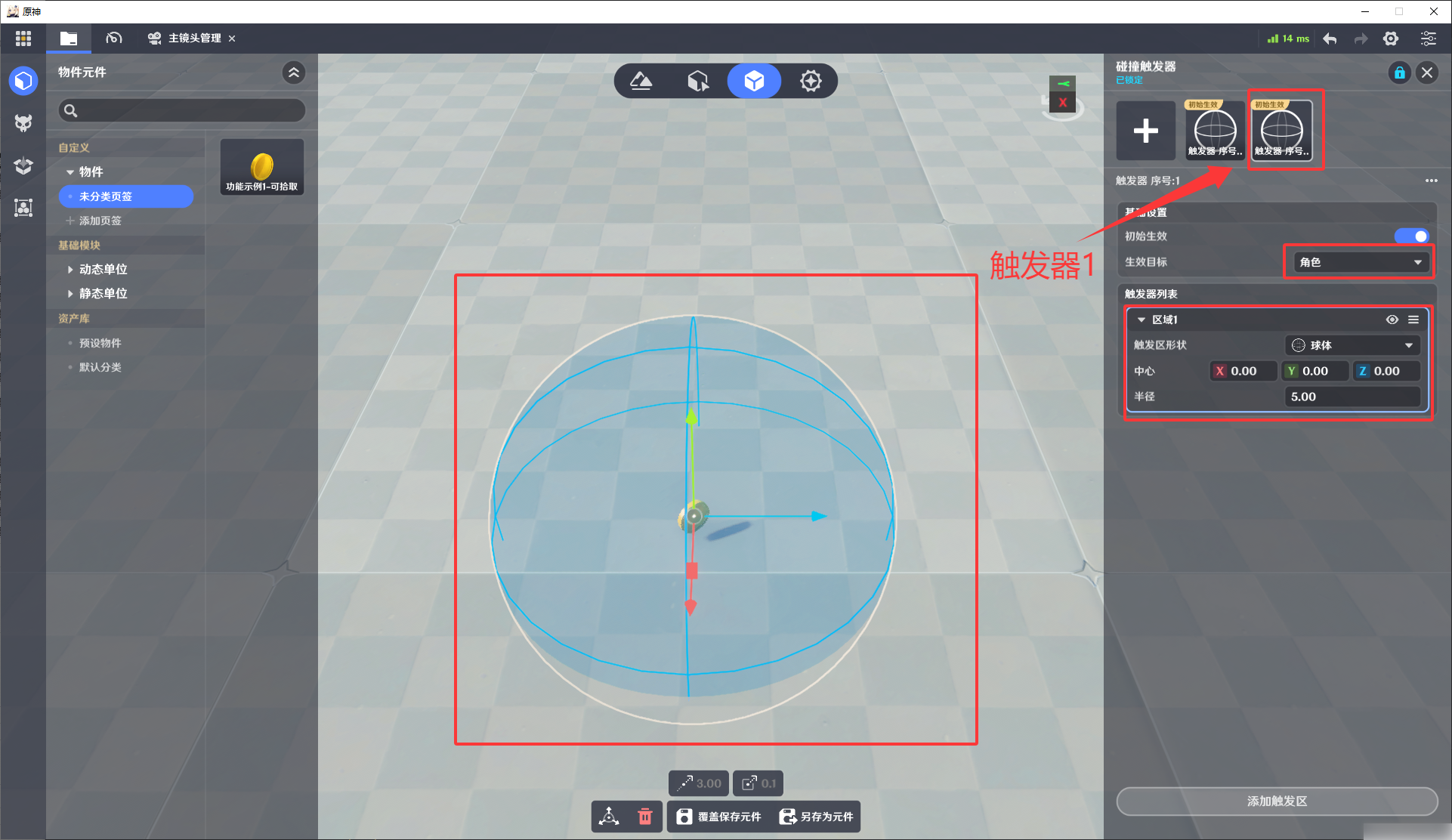 3.【局内编辑器】配置碰撞触发区作为触发条件